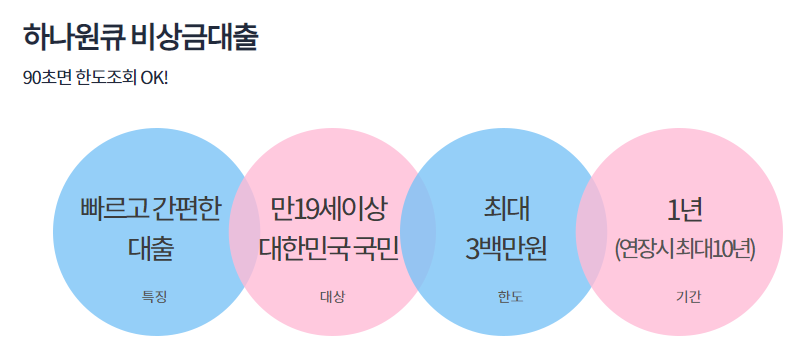간편 모바일 대출 상품은 바로 하나은행 상품인 하나원큐 비상금 대출입니다.